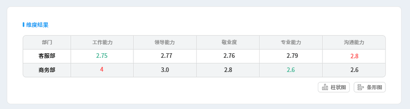 如果說企業(yè)是一個大家庭,那么部門就屬于一個小團體了。每一個小團體都有自己的獨特性,這是屬于職能范疇的區(qū)別。但是對于一個企業(yè)來說,學會求同存異的法則也是有效管理企業(yè)的法寶之一,去除部門工作職能的差異性,如何確保每個部門都是以同樣的工作氛圍和工作態(tài)度在工作呢?這對企業(yè)管理者是一個難題,對部門管理者來說更是一個挑戰(zhàn)。如何解決這個棘手的問題?360評估系統(tǒng)給您答案: 首先需要讓部門管理者了解自己部門的情況,并從本質(zhì)上知道哪些方面的不足,和其他部門的差距是多少?有了這樣直觀的量化顯示,部門管理者便能夠清晰知道問題所在,從而進行改善。企業(yè)管理者也能知道哪些部門比較優(yōu)秀,對其進行相應(yīng)的獎勵和表揚,激發(fā)員工和部門團隊努力向上的斗志。